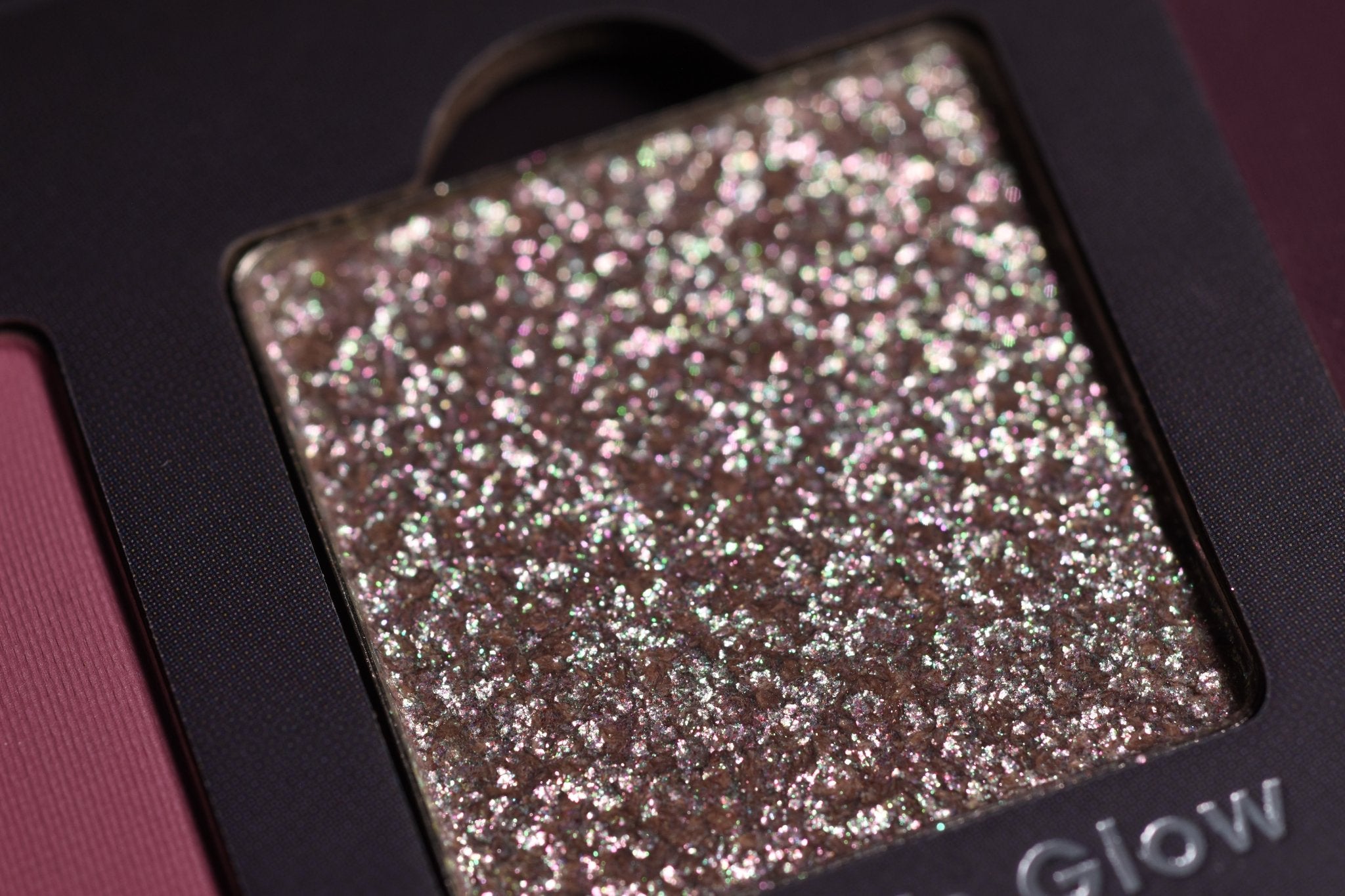 A champagne, pink and green multichrome shimmer with refined sparkle. Smooth texture, fine particle size.